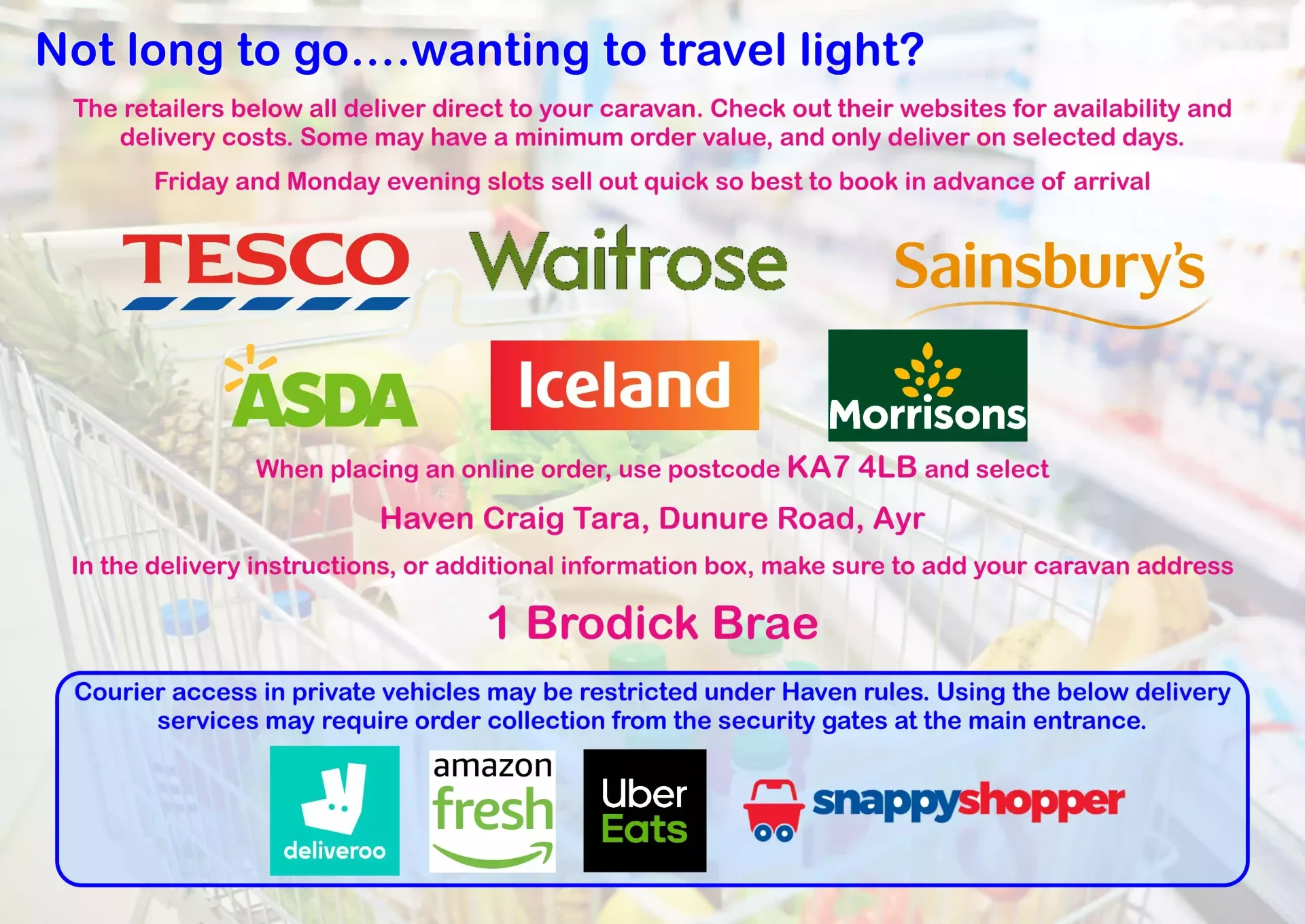 Please show the gate staff your car pass which should have been emailed to you by Haven. They will direct you to our caravan if you ask.